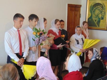 27 мая в воскресной школе при Иверском храме прошел выпускной вечер для семи ребят из старшей группы (руководитель — педагог Наталья Морозова). Настоятель Иверского храма протоиерей Василий Гришанов вручил каждому грамоту об окончании воскресной школы и Евангелие и дал напутствие во взрослую жизнь. К своим воспитанникам обратилась и Наталья Николаевна. В ответ ребята вручили отцу Василию, матушке Марине и педагогам воскресной школы цветы и поблагодарили их в стихах. После небольшого выступления воспитанники и педагоги сфотографировались у стен Иверского храма. А завершился выпускной вечер трапезой.