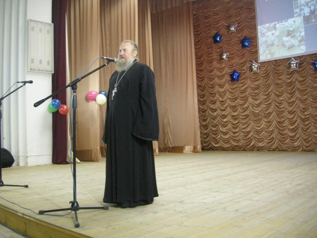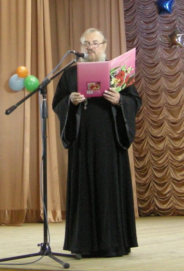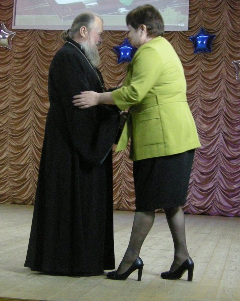 5 октября в городском Доме культуры г.Эртиля прошел концерт, посвященный Дню учителя. На нем присутствовал настоятель Иверского храма протоиерей Василий Гришанов. Отец Василий поздравил педагогов с их профессиональным праздником, зачитал поздравление епископа Борисоглебского и Бутурлиновского Сергия всем учителям, а также вручил грамоты директорам школ, набравших наибольшую сумму средств в акции «Белый цветок». Также отец Василий вручил грамоту руководителю отдела образования Эртильского муниципального района Людмиле Поляковой.