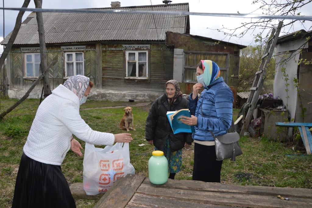 Накануне поездки в Никольский волонтеры Иверского храма привезли продукты многодетной семье Луценко из поселка Сергеевки, в которой отец один воспитывает семерых детей. Сельчанам передали картофель, соленья, варенья, хлеб, консервы и другие продукты.