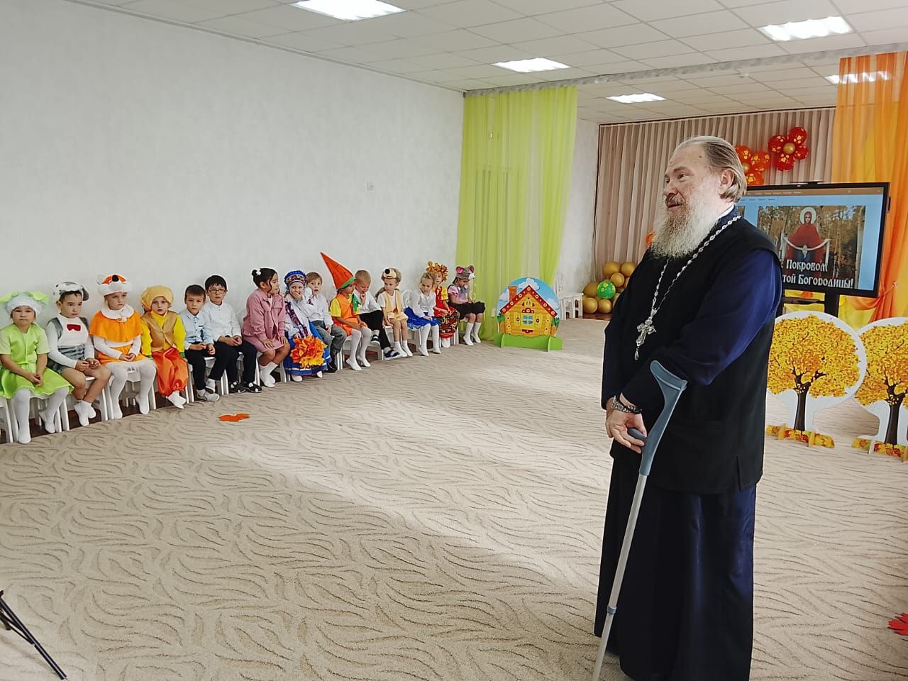 Шестнадцатого октября настоятель Иверского храма протоиерей Василий Гришанов посетил г руппу «Дружная семейка» МКОУ «Детский сад 3», где состоялся замечательный праздник Покрова Пресвятой Богородицы. Этот день стал не только радостным событием, но и важным моментом для духовного воспитания дошкольников. Отец Василий рассказал о происхождении праздника и познакомил детей с иконой Божией Матери «Покров Пресвятой Богородицы» и рассказал о чудесах, которые происходили с людьми, когда они обращались к этой иконе с молитвой. Батюшка подчеркнул, что даже в таком юном возрасте дети должны знать молитву Пресвятой Богородице, что является важным шагом на пути к вере.